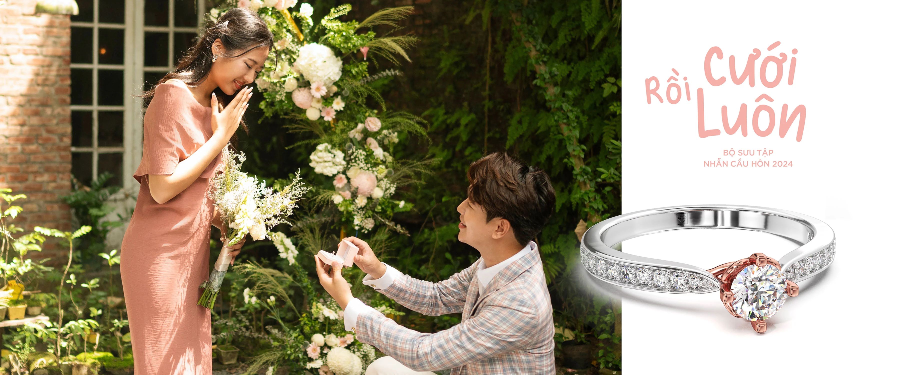 Huy Thanh đã chính thức trở lại đồng hành cùng các cô dâu chú rể trong mùa cưới 2024 này với BST nhẫn cầu hôn “RỒI CƯỚI LUÔN”. BST mang đến đa dạng lựa chọn về khoảng giá và chất liệu với mong muốn giúp bạn tìm được chiếc nhẫn cầu hôn phù hợp nhất, ý nghĩa nhất.
