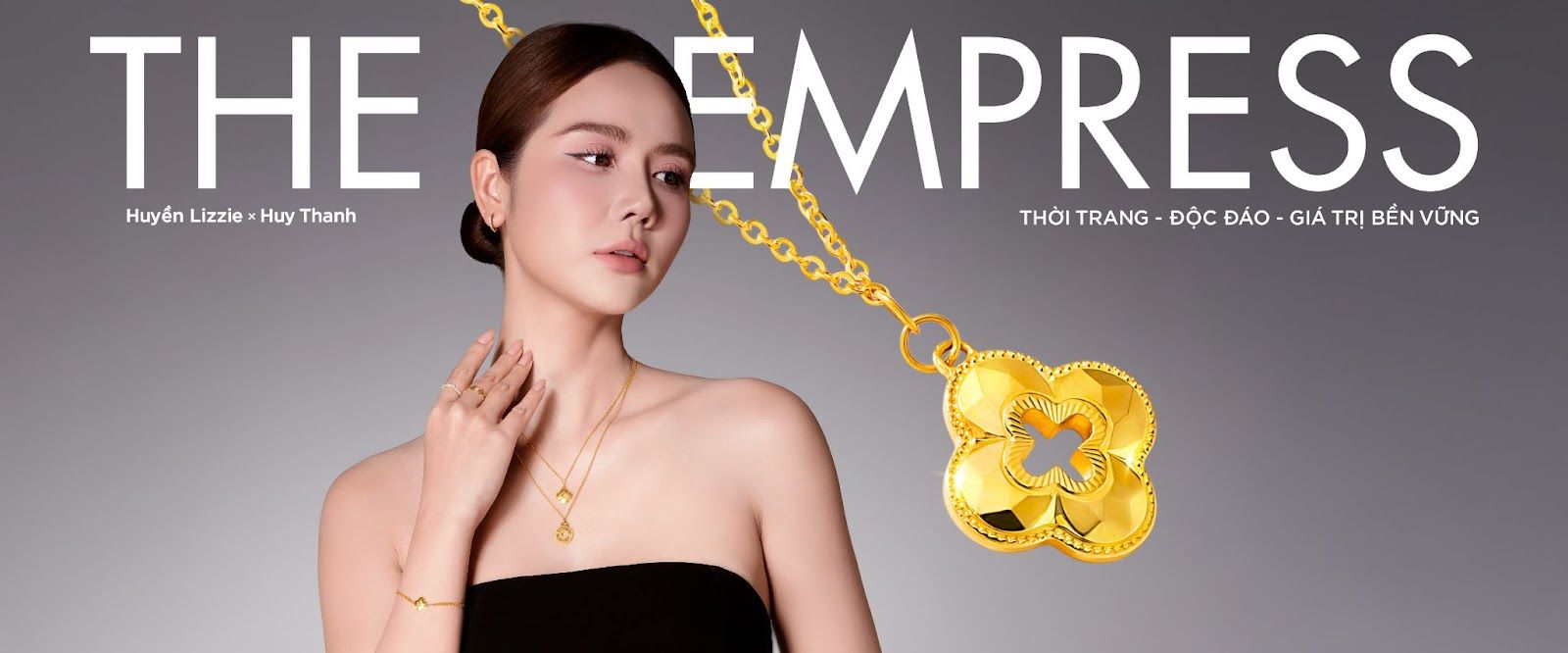 Huy Thanh lần đầu tiên ra mắt BST độc quyền trang sức vàng 24K ‘The Empress’ - mang tính đột phá của ngành kim hoàn khi kết hợp được tính thẩm mỹ của một món trang sức trên chất liệu vàng 24K.