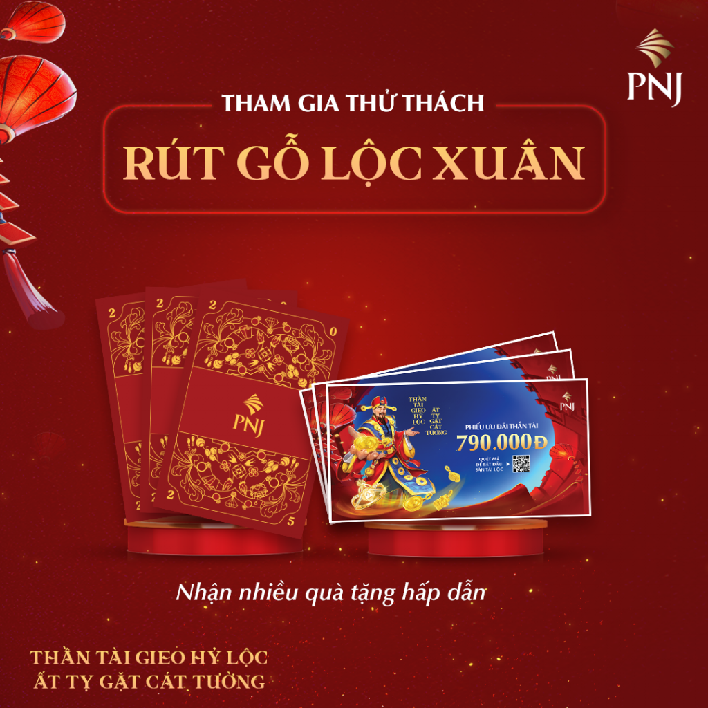 Ngoài ra, khi tham gia thử thách RÚT GỖ từ PNJ bạn sẽ có cơ hội nhận nhiều lì xì và nhiều phiếu ưu đãi 390.000Đ, 790.000Đ.